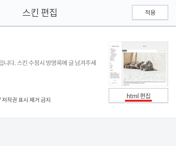 자신의 티스토리 블로그 관리 화면에서 꾸미기 > 스킨 편집 메뉴로 들어가도록 합니다.