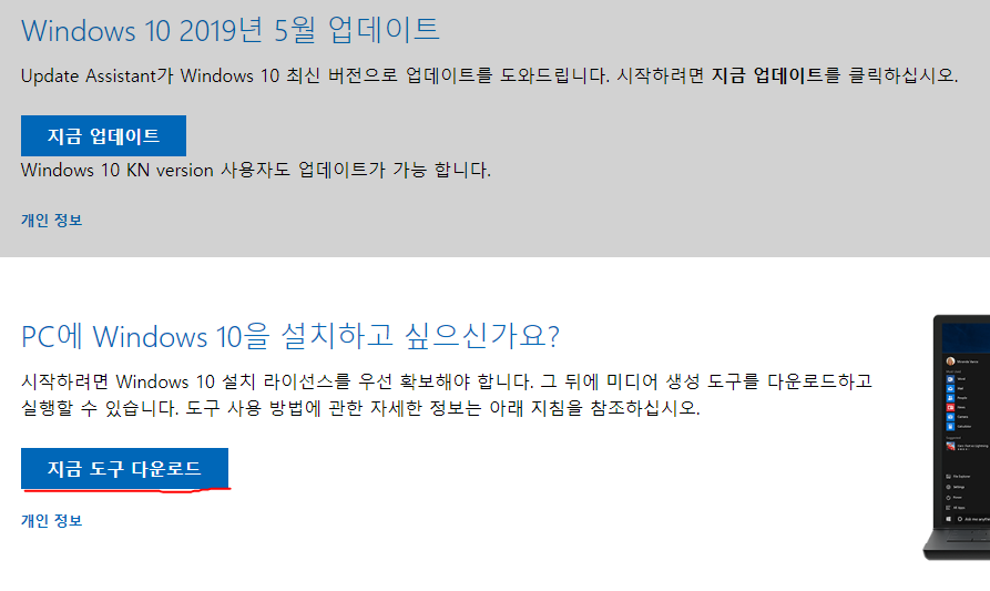 이동한 링크에서 "지금 도구 다운로드" 를 클릭하면