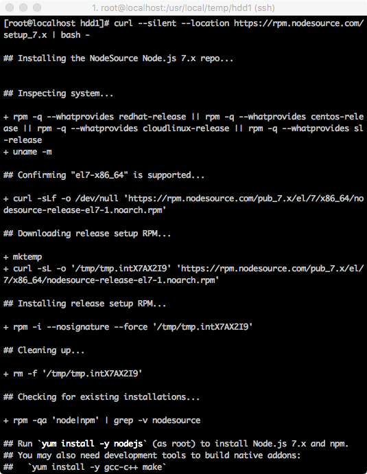 $ curl --silent --location https://rpm.nodesource.com/setup_8.x | sudo bash --
