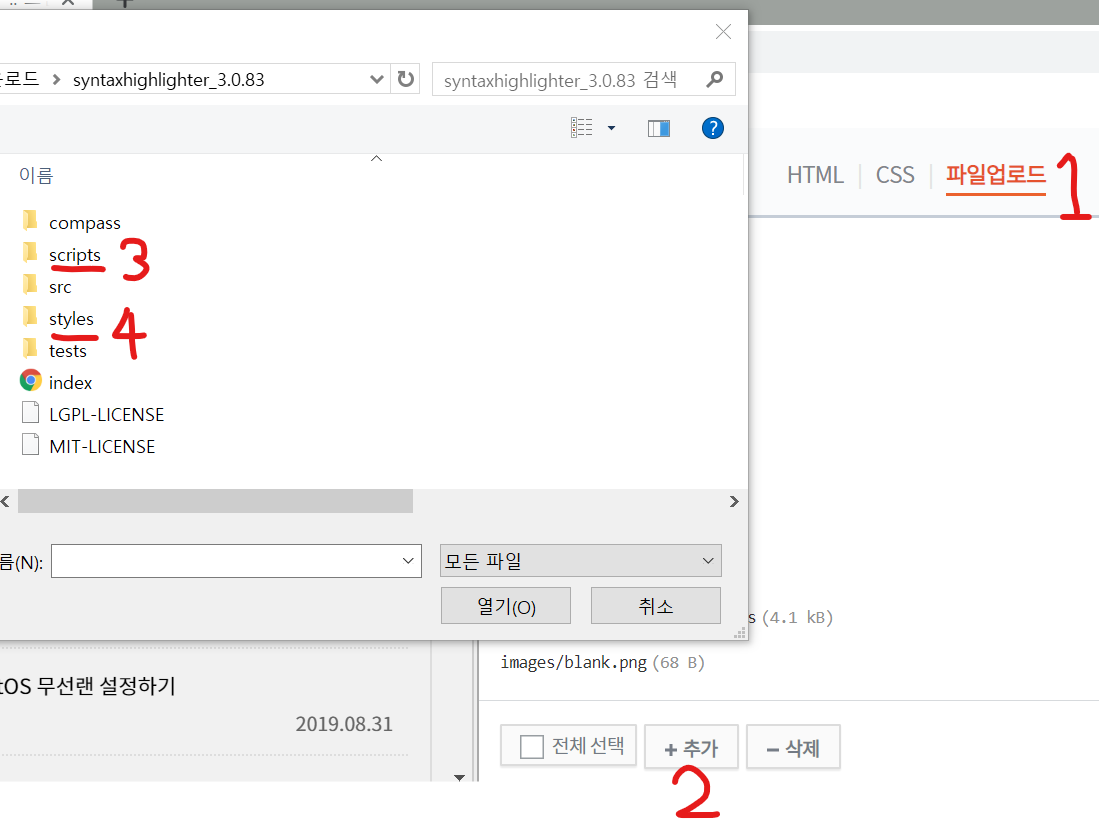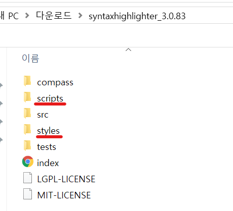 압축 해제한 폴더를 보면 위의 scripts, style 폴더 두개만 신경쓰시면 됩니다.